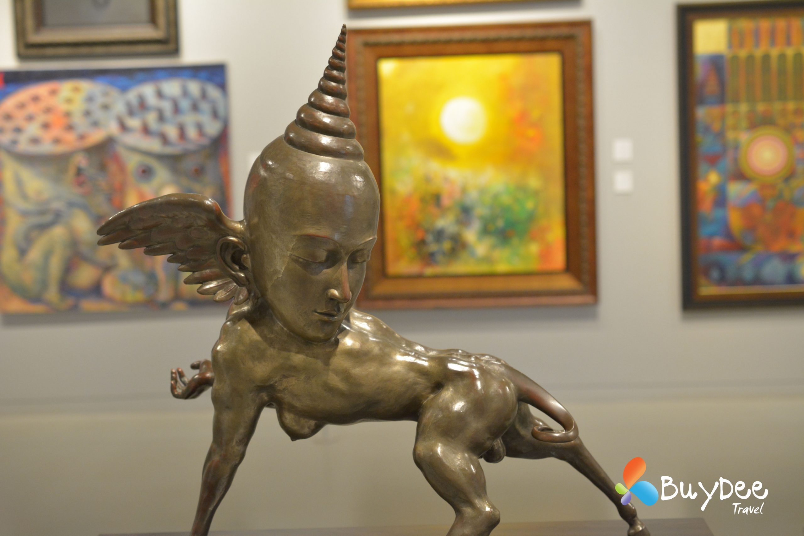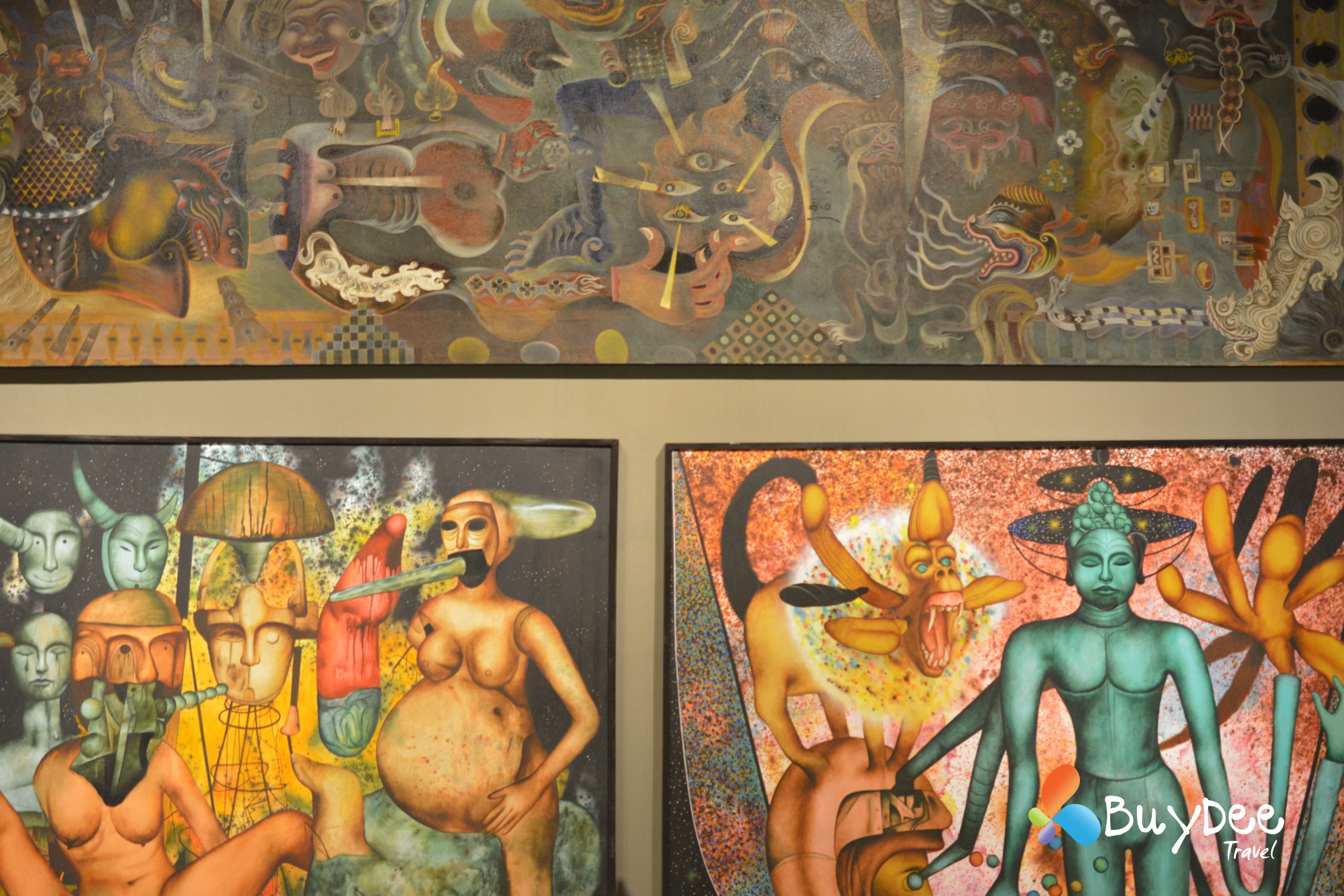 และต่อกันที่จุดหมายถัดมาก็คือ Khao Yai Art Museum เป็นที่จัดแสดงงานศิลปะมากมายของอาจารย์ด้านศิลปะหลายรูปแบบ ทั้งภาพวาด และงานปั่นต่างๆ ที่นี่มีเงื่อนไขการเข้าชมคือถ่ายรูปได้อย่างเดียว ห้ามถ่ายวิดีโอ และที่สำคัญช่วงเวลาโควิดแบบนี้ห้ามถอดแมส