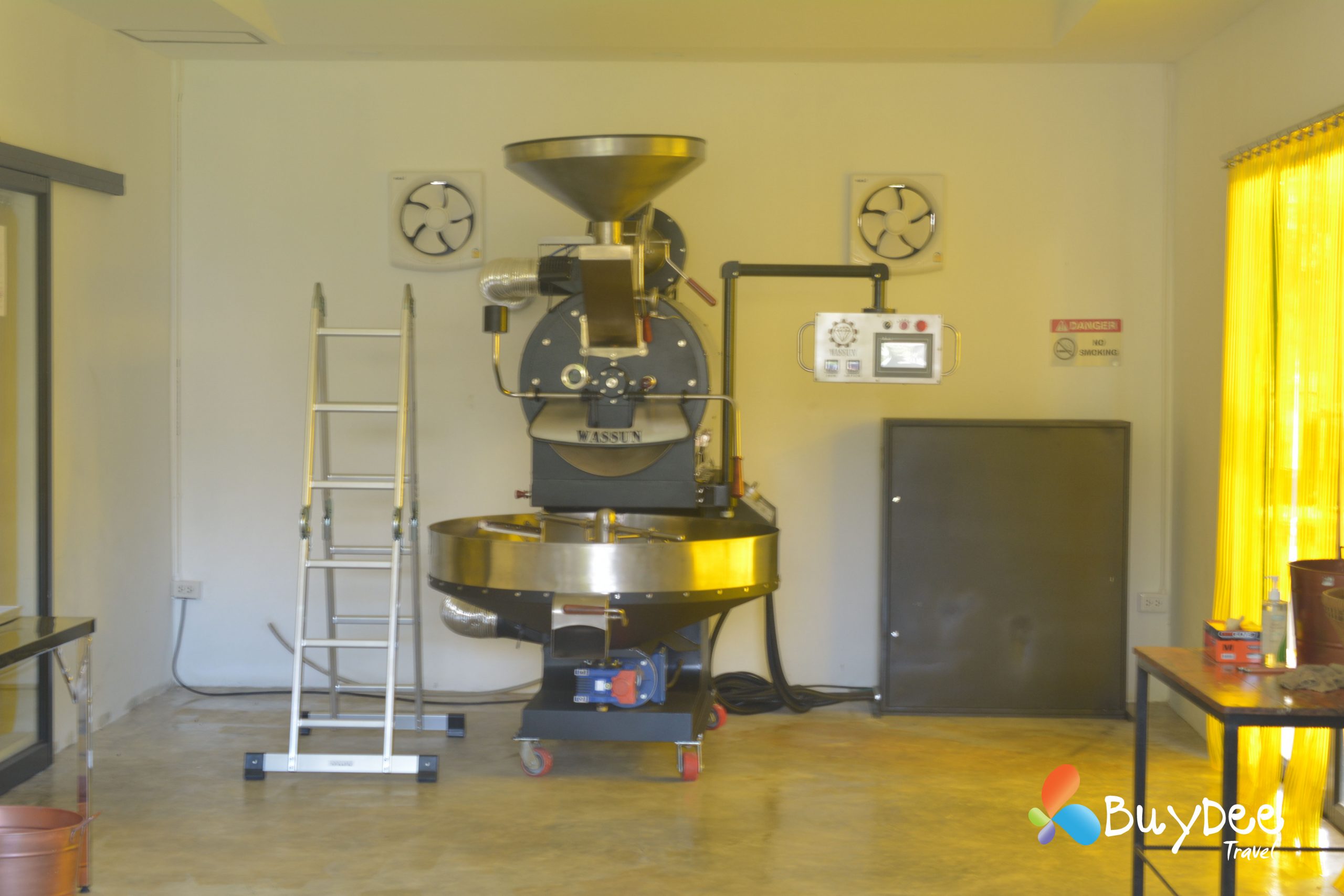 และสถานที่สดท้ายของทริปนี้ก็คือ โรงคั่วกาแฟ วังน้ำเขียว ที่นี่ตั้งอยู่ริมบึงน้ำขนาดใหญ่ ท่ามกลางต้นไม้และทิวเขา บรรยากาศดีชวนง่วงนอนจากการขับรถตลุยมาทั้งวันแบบผม