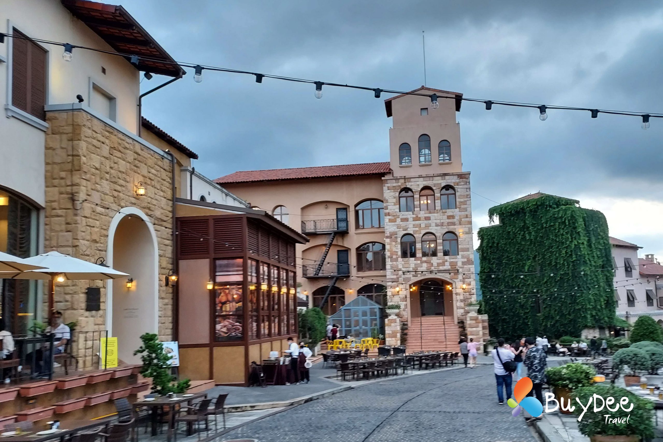 นอกจากโซนห้องพักแล้วก็ยังมีโซนที่เป็น Toscana Valley Town Square มีร้านอาหารต่างๆ ผมเองก็แวะไปฝากท้องตอนมื้อเย็นกับอาหารเบาๆที่ร้าน Vino Cafe & Wine Bar นั่งชิลๆรับบรรยากาศ ก่อนที่จะเข้าพักในค่ำคืนนี้
