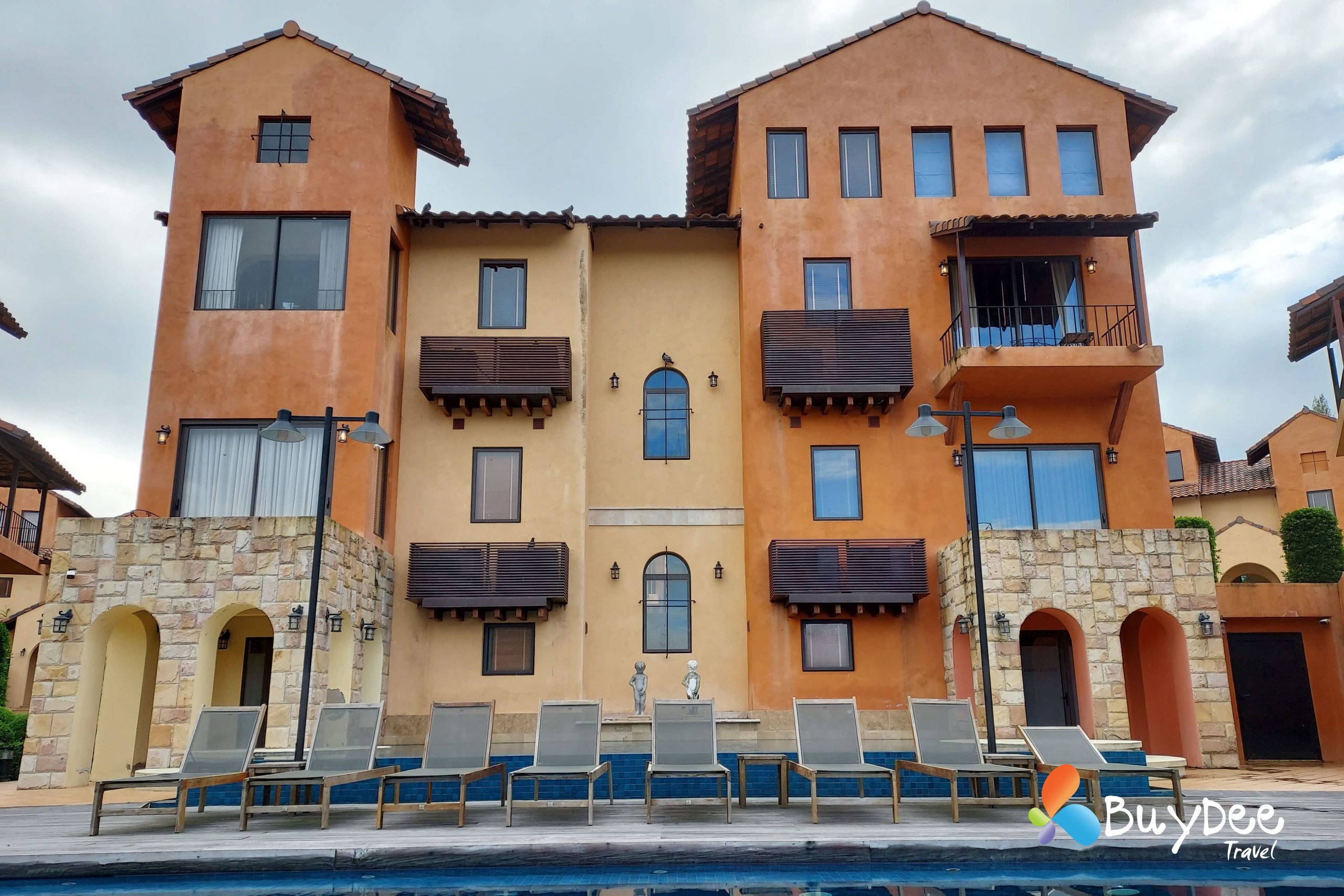 มุ่งหน้ากันต่อไปเข้าที่พักของวันนี้ นั้นคือ โรงแรมลา คาเซ็ทต้า บาย ทอสกานา วัลเล่ (Hotel La Casetta by Toscana Valley) ที่นี่เป็นโรงแรมหรูระดับต้นๆเลยก็ว่าได้ มีสิ่งอำนวยความสะดวกครบครัน และที่สำคัญมีมุมให้ถ่ายรูปได้ทุกที่ ไม่ว่ามุมไหนก็สวยทั้งหมด แต่ที่นี่ไม่อนุญาตให้บินโดรนนะครับ โรงแรมออกแบบให้คล้ายกับหมู่บ้านเล็กๆ ริมเขา ใกล้กับเขตอุทยานแห่งชาติเขาใหญ่ภายใต้บรรยากาศที่เป็นธรรมชาติ และเงียบสงบ แต่พร้อมสรรพไปด้วยร้านอาหารและสระว่ายน้ำวิวสวยริมทะเลสาบ ผมกับพี่ก็จองห้องพักริมทะเลสาบและวิวสระน้ำ บรรยากาศดีเลยครับ