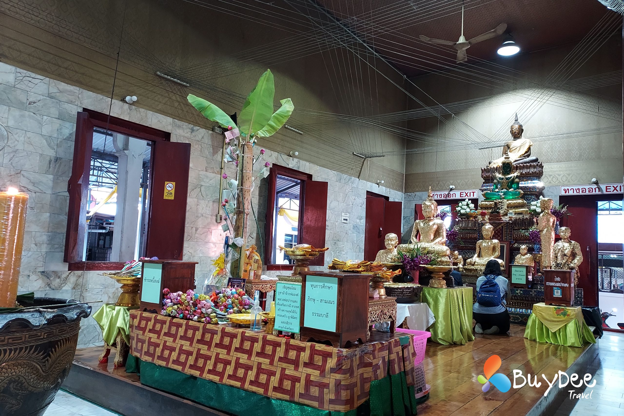 เติมพลังจนอิ่มเป้าหมายวันนี้ก็จะเป็นวัดมณีวงศ์ เพื่อไปสัมผัสความอลังการสักครั้ง แต่วันที่ผมเดินทางมาถึงก็เป็นวันที่คนเยอะมากเลย เพราะเป็นวันที่ทางวันมีกิจกรรมทอดกระถินใหญ่พอดี ผมก็เลยรีบเก็บบรรยากาศสำหรับภายในวัดและที่นี่ก็เป็นจุดนัดพบพี่สาวเพื่อเดินทางกลับบ้านกัน