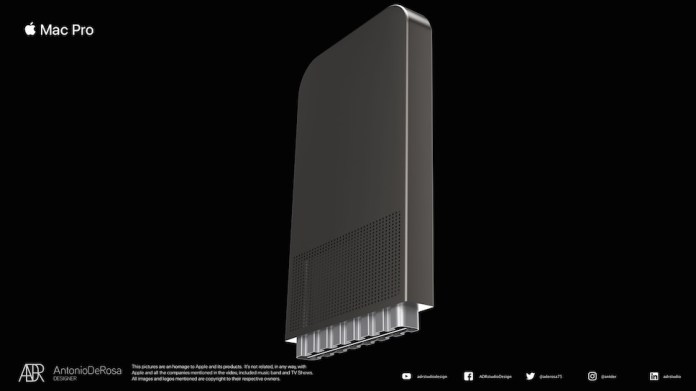 • โดยคอนเซ็ปต์ Mac Pro ของ Antonio De Rosa ยังคงรักษาเอกลักษณ์คอมพิวเตอร์เดสก์ท็อปของ Apple ไว้อย่างชัดเจน เมื่อมองจากด้านหน้า