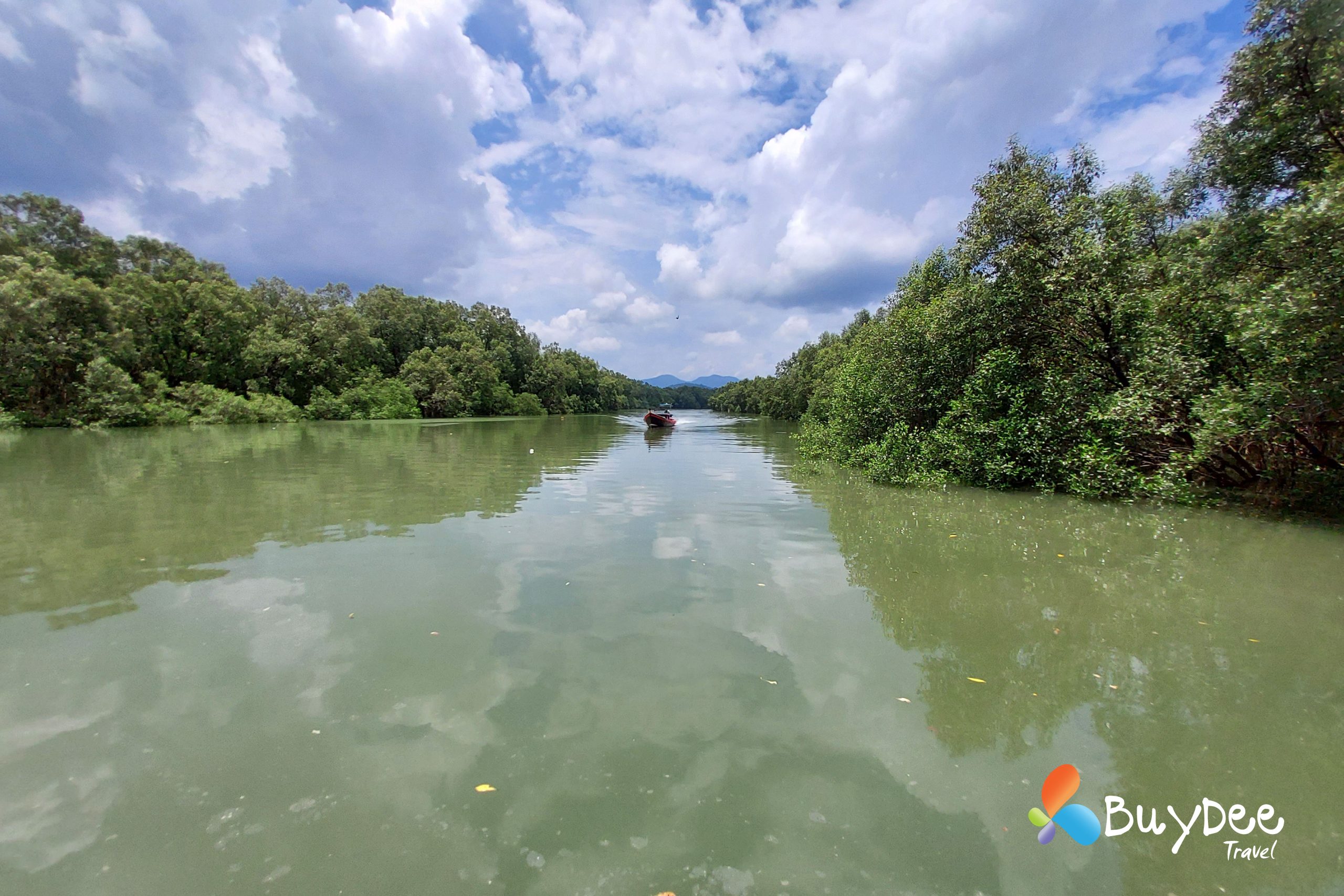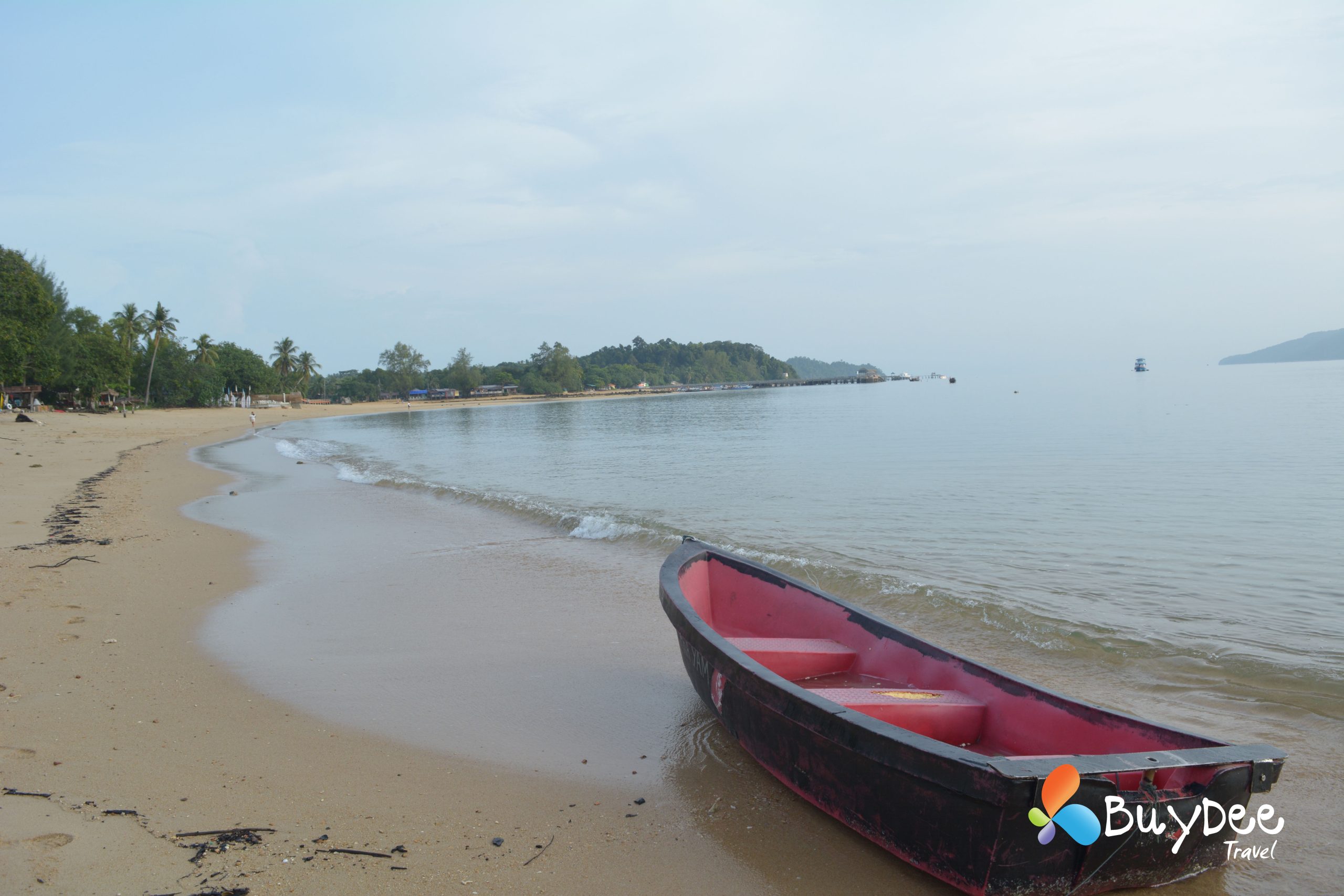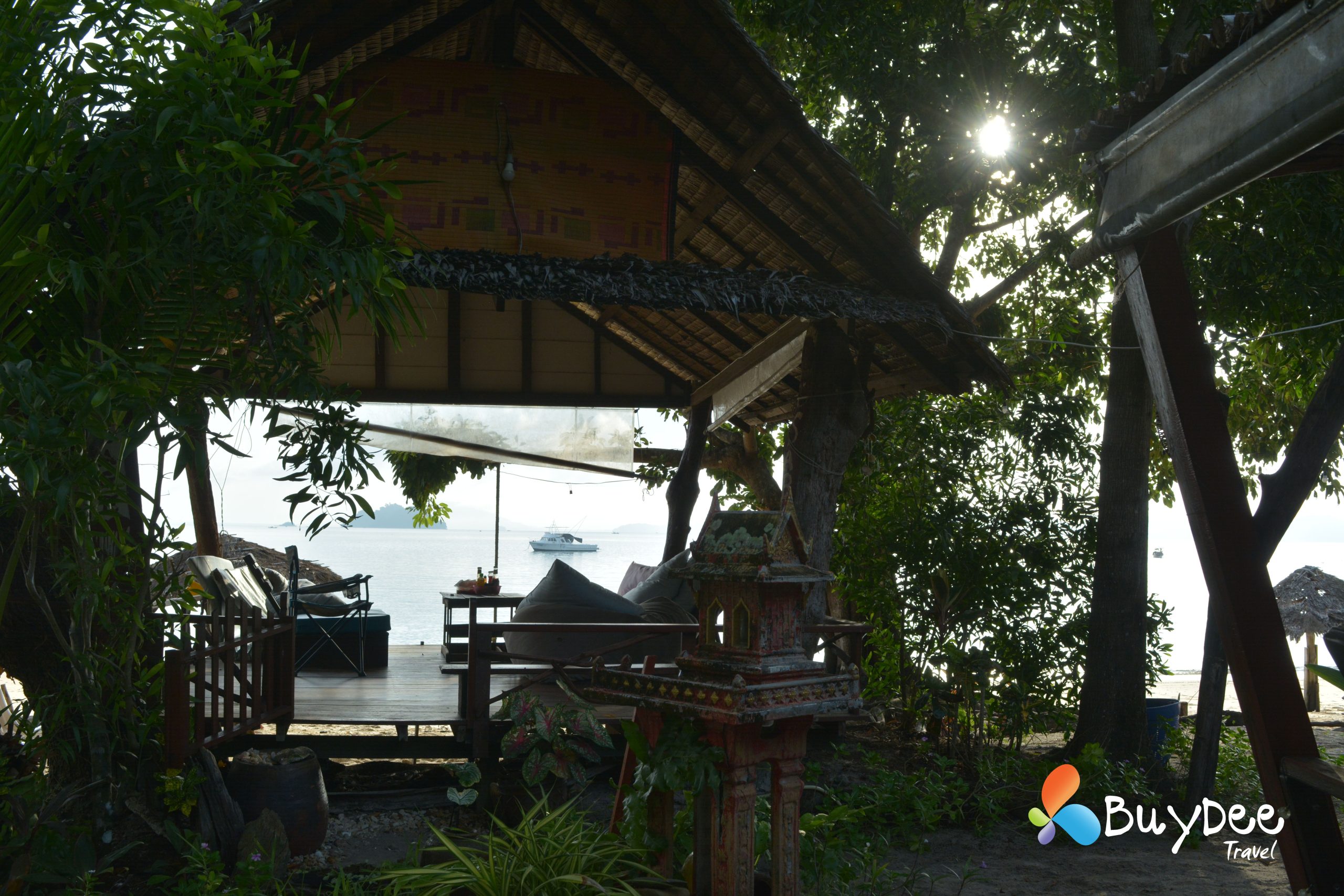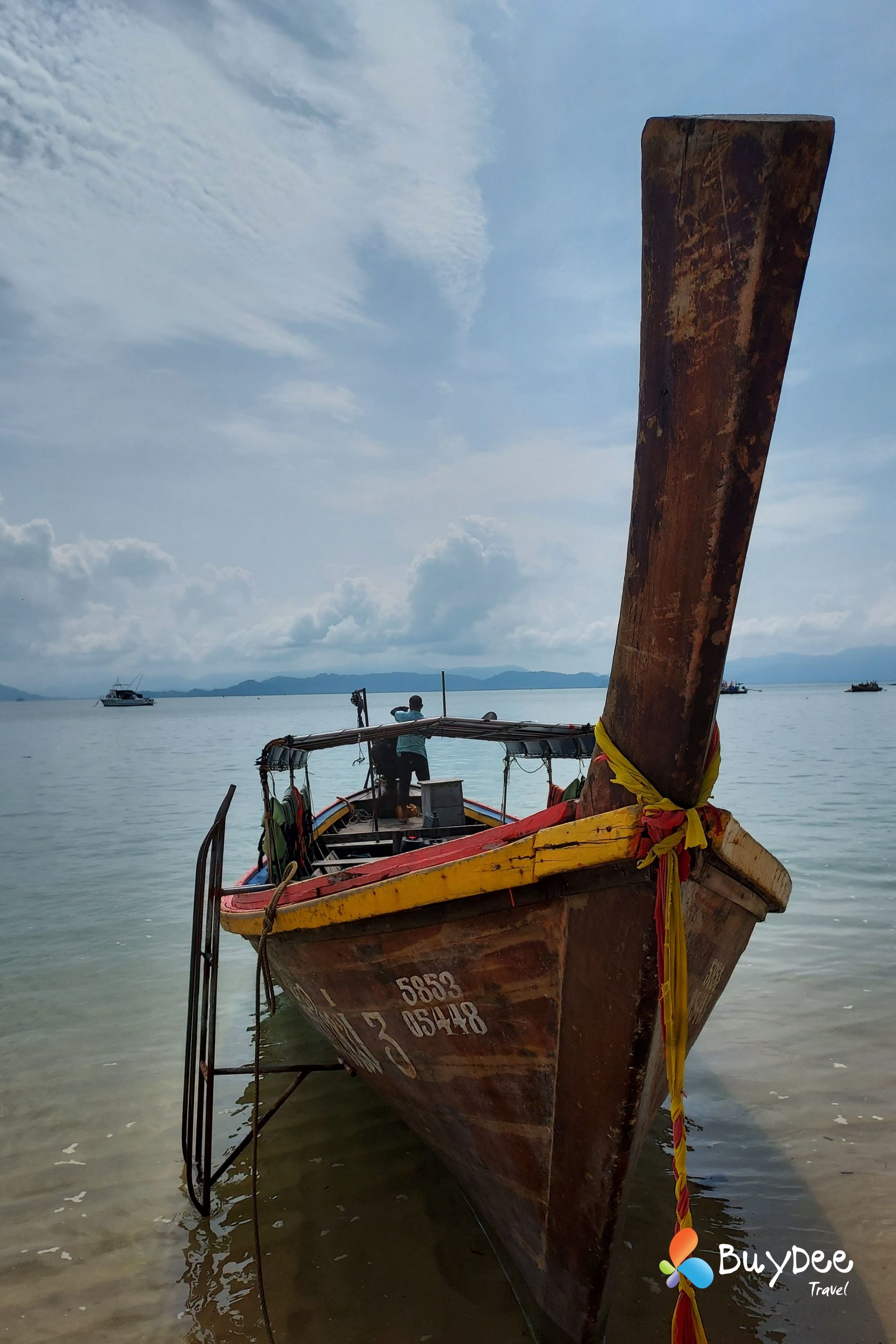 เราตัดสินใจเหมารถตู้ทั้งคัน เพื่อความสะดวกและระหว่างเดินทางจอดทานข้าวที่ร้านข้าวมันไก่ทับหลี หลังจากเติมพลังกันเต็มอิ่มแล้วใช้เวลาไม่นานมากนักเราก็ถึงท่าเรือ นั่งรอเที่ยวเรือตามรอบระยะเวลาอยู่พักใหญ่ มีสายฝนโปรยลงมาเล็กน้อย และก็กระโดดขึ้นเรือสปีดโบทมุ่งหน้าไปยังเกาะพยาม