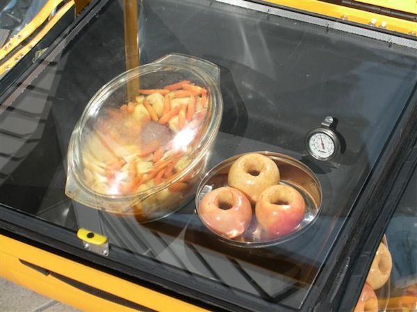 - เตาอบดังกล่าวสามารถอบอาหารในตอนกลางวันได้ด้วย โดยใช้แผ่นสะท้อนแสงอะลูมิเนียม เป็นตัวทำความร้อนจากพลังงานแสงอาทิตย์ ซื้อสามารถทำความร้อนได้ถึง 300 องศาฟาเรนไฮต์