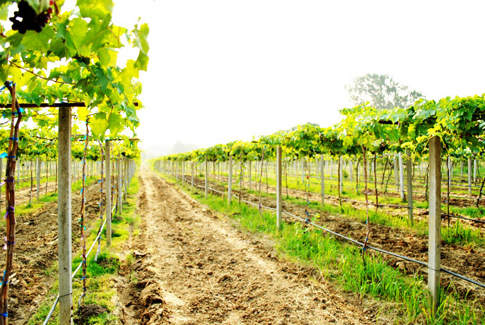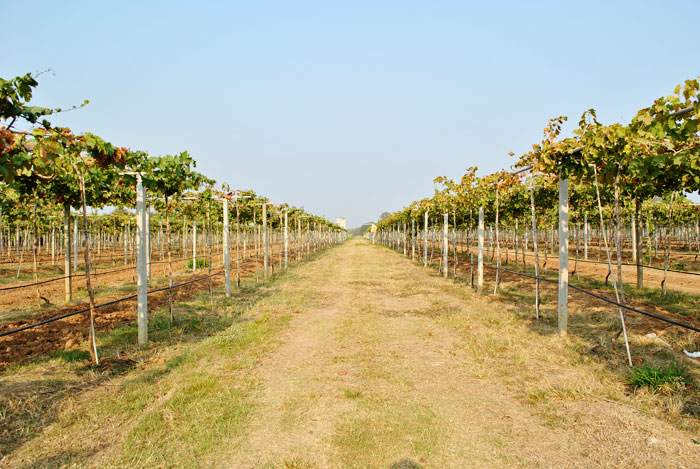 การปลูกองุ่น ณ ไร่แห่งนี้ นั้นจะทำเป็นคานบนเสาเรียงกันเป็นแถวยาวๆ เป็นร้อยเมตร มีกันหลายแถว แต่ละแถวมีช่องว่างกว้างเท่าๆ กันใต้ต้นองุ่นสูงจากพื้นประมาณ 1.5 เมตร เดินลอดได้ รถ ATV ก็อาจจะรอดได้ด้วย
