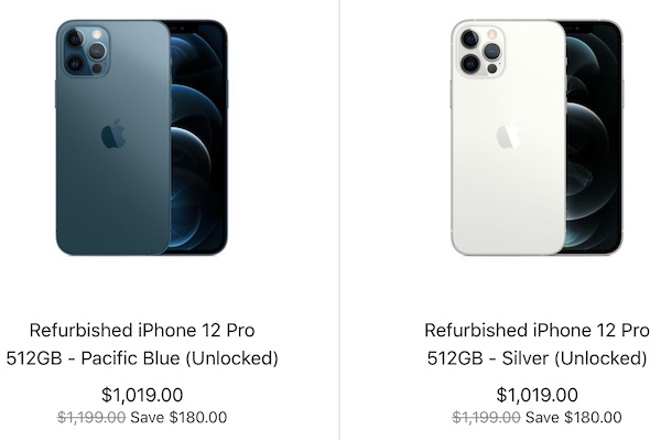 • เว็บไซต์ทางการของ Apple กำลังวางจำหน่าย iPhone 12 และ iPhone 12 Pro ที่ผ่านการ Refurbished ซึ่งหมายถึง iPhone ที่ถูกนำมาทำให้ดูเหมือนของใหม่ ผ่านการตรวจสอบ ทำความสะอาด ได้รับแบตเตอรี่ใหม่ และบรรจุอยู่ในกล่องใหม่ เป็นกล่องสีขาวที่มีข้อความระบุชัดเจนว่าผ่านการ Refurbished